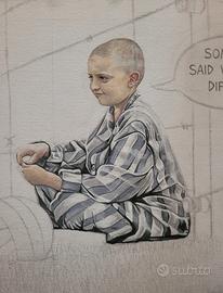 Vendo splendidi quadri artistici di grande valore simbolico ed emotivo. Le opere raffigurano due bambini separati da un filo spinato, un’immagine potente che racconta temi universali come l’empatia, la diversità, l’ingiustizia e l’umanità condivisa.