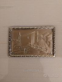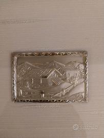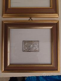 Coppia di piccoli quadri con paesaggio in argento. Misure 21x19 cm