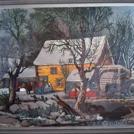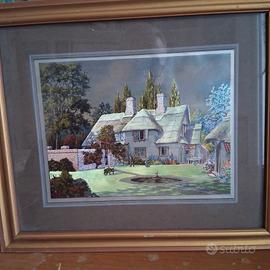 Coppia di quadri tema campagna francese in paesaggio ivvernale e primaverile ,visione con colore riflettente,misura 33x28