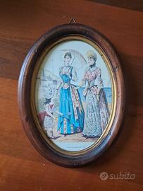 Riproduzioni numerate “Printed by Grafiche Tassotti n. 557” raffiguranti donne d’epoca incorniciante in quadretti ovali di legno con interno color oro. Misure 20 cm x 26 cm
