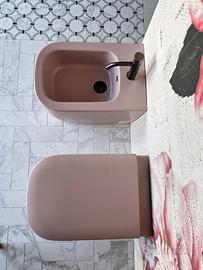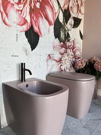 ✨ Occasione per rinnovo esposizione – Coppia composta da WC e Bidet a terra in elegante ceramica color Cipria, una tonalità raffinata e di tendenza che porta calore ed esclusività in ogni ambiente bagno. Acquistabili insieme a mobile bagno pink e salvia abbinato (vedi ultima immagine)
