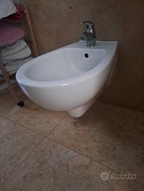 coppia di sanitari sospesi pozzi ignori con rubinetteria bianchi lucidi