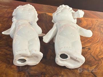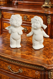Coppia Sculture Putti in Porcellana Bianca