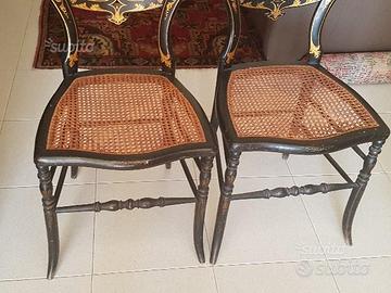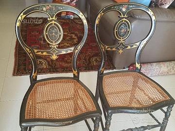 Vendo bellissima coppia di sedie dell'800 dipinte e con intarsi in madreperla - da restaurare