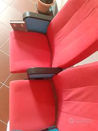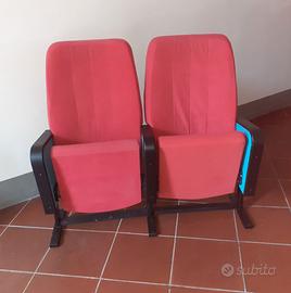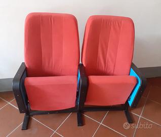 Vendo coppia di sedute originali da cinema o teatro, in stile vintage, con struttura in metallo e braccioli in legno riverniciati . Rivestimento in tessuto rosso, in buone condizioni generali. Ideali per arredamento a tema, locali, sale hobby o collezionisti. Sedili ribaltabili Disponibili alla spedizione con prezzo da valutare.