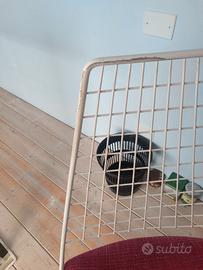 2 sedie in metallo verniciato bianco con seduta in tessuto. Regolabili in altezza. Minimo difetto nella seduta rivedibile con verniciatura. Ottime anche uso ufficio.