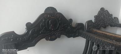 Sedie pieghevole originale primi '900 in stile Rinascimento, braccioli intagliati con testa leonina e pure le gambe.Alcuni segni di usura ma struttura robusta e nessuna parte mancante ne rotta. Non spedisco.
