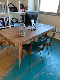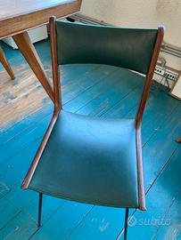 Vendesi rara coppia di sedie originali degli anni '50, un perfetto esempio di modernariato italiano che richiama le linee iconiche di Carlo De Carli e Carlo Ratti.