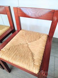 Robusta struttura in legno massello con venatura a vista, finitura color ciliegio e seduta in paglia intrecciata, molto ben conservata.