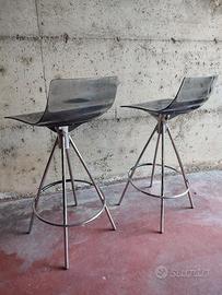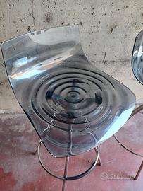 Coppia sgabelli Calligaris L'eau grigio fumé usati. Uno è danneggiato sul bordo anteriore. Presenza di lievi righe