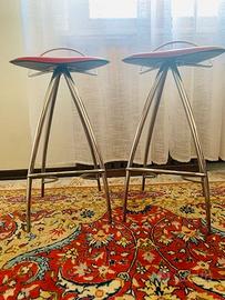 Coppia sgabelli Cattelan Italia con seduta in pelle rossa e struttura in acciaio. Ottimi per bancone cucina/penisola, bancone bar, consolle sia per uso domestico che per locali. Vendo causa liberazione locali. Ottimo stato, un vero affare. Misure: H74cm , seduta largh 40cm prof. 38
