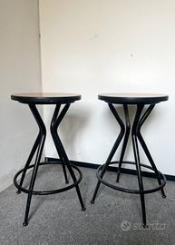 Vendo bellissima coppia di sgabelli in formica originali degli anni 60/70. Base Tubolare metallico laccato nero, solido e stabile. Seduta Circolare in formica effetto legno (tonalità calda), resistente e facile da pulire. Perfetto per ambienti Industrial, Modernariato o per spezzare un arredamento moderno/minimalista. Ideali per penisole in cucina, banconi bar, studi creativi o come elementi decorativi. Presentano i normali segni del tempo sulla laccatura e sulla seduta (piccoli graffi come da foto in una delle 2 sedute) ma sono strutturalmente perfetti e pronti all'uso. Consegna anche su Roma. Prezzo: 90€ per la coppia (valuto proposte per ritiro immediato).