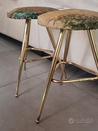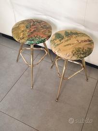 Coppia Sgabelli In Ottone Anni 50 Midcentury. Le condizioni estetiche sono buonissime considerando l età degli sgabelli ad eccezione della seduta di uno che come evidenziato in foto e stato riparato avrei potuto sostituirlo con Spesa irrisoria ma ho voluto mantenere l originalità del tutto altezza sgabello 42 cm