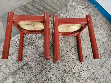 coppia sgabelli legno paglia rossi