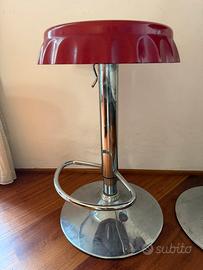 Coppia di sgabelli regolabili in altezza da 60 a 90 cm con meccanismo a gas. Realizzati in abs rosso e metallo cromato L 40 cm - P 45 cm