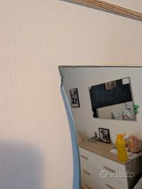 Coppia di iconici specchi IKEA linea KRABB, caratterizzati dal design ondulato a "S", perfetti per dare movimento e luce a qualsiasi stanza o per l'interno di un armadio. Dettagli dell'articolo: Quantità: 2 specchi. Stato: Uno specchio è in ottime condizioni; il secondo presenta una leggera scheggiatura su un angolo, che non ne pregiudica l'utilizzo (ideale da posizionare in un punto meno visibile o coprire con un dettaglio decorativo). Dimensioni: 160x20 cm circa ciascuno. Accessori: Sono inclusi gli speciali supporti originali per il fissaggio a parete. Nota: I tasselli non sono inclusi (facilmente reperibili in qualsiasi ferramenta in base al tipo di muro).