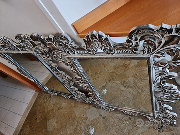 Particolare stile di lavorazione con tonalità sfumata di colore bianco antichizzato su sfondo in legno marrone, misura 118x89 cm. ogni specchio.