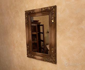 Coppia di specchi con cornice in legno Vendo due specchi, fratelli. Uno piu grande. Molto belli. Si possono appendere o appoggiare ad un mobile. Arredano molto. Molto ben tenuti. Quello grande misura altezza 96 larghezza 79 € 120 Quello piu piccolo altezza 84 larghezza 59 € 100 Vendibili anche separatamente anche se sarebbe un peccato separarli. Ovviamente vendibili in zone vicine…evitiamo 7 anni di s…a 😅 Prezzo 200 euro