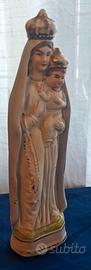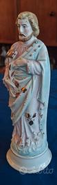 Elegante coppia di statue in ceramica smaltata e dipinta a mano, raffiguranti la Madonna coronata con Bambino in braccio e San Giuseppe con giglio sul petto.