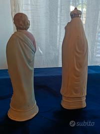 Le figure presentano decorazioni in rilievo e dettagli dorati originali, con segni del tempo che ne testimoniano l'autenticità.