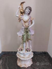 Vendo splendida coppia di sculture autentiche in porcellana di Capodimonte, realizzate e dipinte interamente a mano in Italia. Si tratta di due figure speculari in stile rococò (un giovane e una giovane con brocche), complete dei loro piedistalli originali coordinati. I pezzi sono di altissima manifattura, caratterizzati da colori pastello delicati e ricche rifiniture in oro zecchino. Dettagli principali: Marchio: N coronata (Capodimonte) ben visibile sulla base. Stato di conservazione: Eccellente .Nessuna mancanza evidente su petali o dita (parti solitamente fragili). Dimensioni: 141 lui l'altezza in cm compresa la base] cm.138 lei Valore: Acquistate presso galleria specializzata per 1.000€, vendo per rinnovo arredamento a prezzo di realizzo. Prezzo: 250€ cadauna. Preferenza per la vendita in coppia (500€ totali), solo a persone realmente interessate. No perdi tempo.