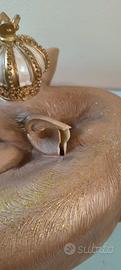 Le sculture raffigurano due cerbiatti (daini), uno in posizione eretta e uno sdraiato, entrambi impreziositi da una corona dorata removibile. La finitura è un elegante color bronzo/oro lucido, con delicati dettagli glitterati che aggiungono un tocco di brillantezza.