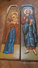 macedone che rappresentano una la Madonna dell'Amore e l'altra Gesù Maestro, su legno inciso e dipinte e mano secondo le antiche tradizioni cristiane di rito orientale.