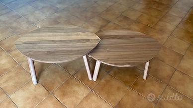 Set di 2 tavolini, impiallacciatura di noce modello STOCKHOLM Ikea Lunghezza: 72 cm Larghezza: 47 cm Altezza massima: 36 cm Carico massimo: 10 kg uno dei due tavolini ha una piccola sbeccatura sul bordo