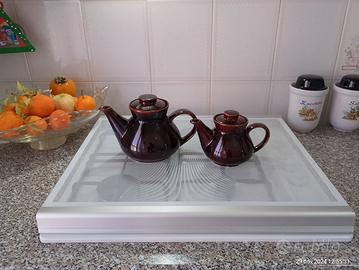 Coppia Teiere ceramica smaltata marrone EP vintage anni 70 bar pub shabby chic