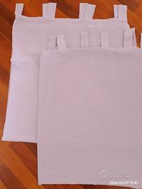 Vendo coppia di tende color lilla complete di asola. Dimensioni: 134 x 308 cm ciascuna Tessuto leggero e semi-trasparente, lascia filtrare bene la luce. Perfette per soggiorno, camera da letto o ambienti con finestre alte. Colore lilla tenue, facilmente abbinabile. Le tende sono usate ma in ottime condizioni. Vendute già pronte per essere appese. Consegna a mano a Modena o zone limitrofe.