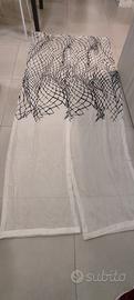 Vendo coppia di tende setose colore bianco con decorazione nera nella parte superiore.