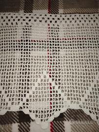 Coppia di tende fatte all'uncinetto ideali come mantovana o tenda a mezzo vetro, 90x40 hanno già i fori per passare la bacchettina