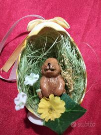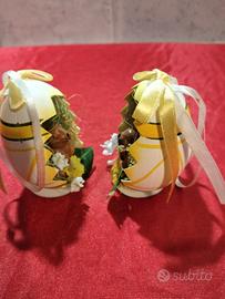 coppia uova pasquali decorative con soggetti castori all' interno, con piedistallo, altezza cm 7, diametro cm 5