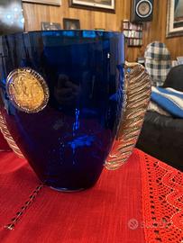 I vasi si presentano in due colorazioni classiche e ricercate: un profondo Rosso Rubino e un elegante Blu Cobalto. Entrambi i pezzi sono impreziositi da dettagli di altissimo pregio.
