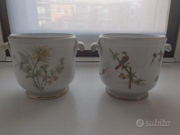 Coppia vasi cachepot in porcellana di Richard Ginori con lo speciale cartiglio Manifattura di Doccia Florence Italy. Il decoro di uno dei due è Primavera. Condizioni perfette. Dimensioni: altezza 13 cm, diametro 14 cm. Consegna a mano su Milano città. Spedizione in tutta Italia.