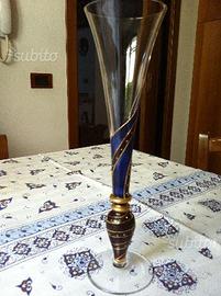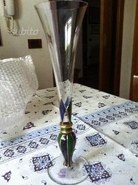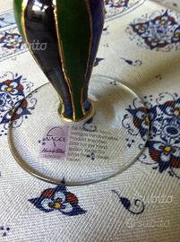 Elegante coppia di vasi a forma calice monofiore in vetro tedesco Nagel garantito Sono dipinti a mano in verde e blu uno, in blu e bordeaux l'altro entrambi con particolari in oro Alti cm28 sono abbinabili con qualsiasi tipo di arredamento sia tradizionale che moderno, apprezzabilissimi sia come portafiori sia come soprammobili