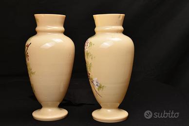 Coppia Vasi Opalina Antica - Dipinti a Mano
