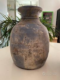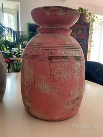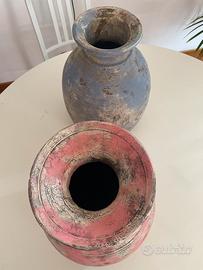 Vendo bellissima coppia di vasi decorativi in legno o materiale simile (probabile MDF o resina), dipinti a mano con effetto invecchiato e craquelé.