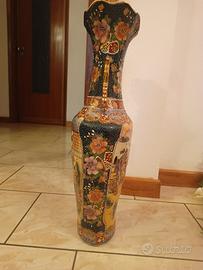 - Vaso Monumentale: Altezza circa 62 cm (esclusa base). Dotato di manici a foggia di drago dorato e ampi pannelli decorati. Inclusa base in legno intagliato (altezza base circa 15 cm).