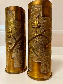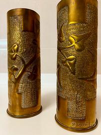 Vendo coppia di vasi decorativi in ottone, ricavati da bossoli d’artiglieria della Prima Guerra Mondiale.
