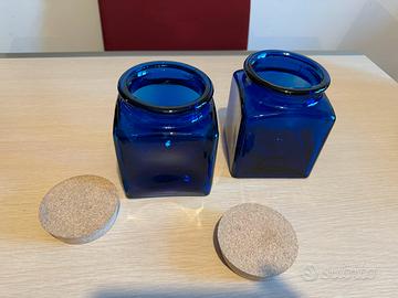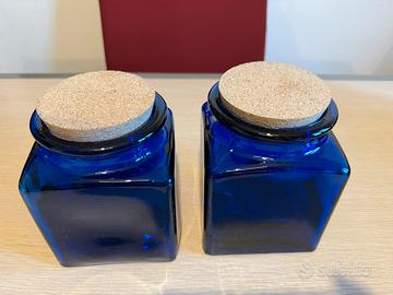 Vendo coppia di vasi in vetro blu cobalto con tappo in sughero.