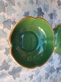 coppia vaso e Ciotola con coperchio decorati con rose. Piccole scheggiature sui lati del vaso come da foto. Ciotola e coperchio in perfette condizioni come da foto