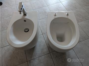 vendesi coppia wc e bidet incluso rubinetto wc senza brida, stile filo pavimento e filo muro. usati ma in ottimo stato.