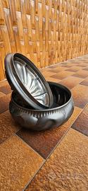 Vendo elegante coppia di zuppiere in peltro, complete di coperchio originale. Design classico e lavorazione decorata, ideali sia come oggetti d’arredo che per utilizzo in tavola. Condizioni ottime, come da foto. Una zuppiera è più alta con piede, l’altra più bassa: perfette anche come set decorativo coordinato. Ideali per amanti del vintage, collezionisti o per arredare con stile rustico/elegante