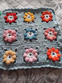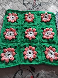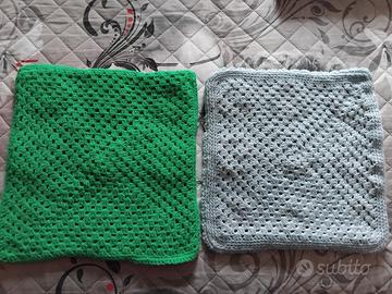 Copri cuscini coppia verde-azzurro con fiori fatti a mano ad uncinetto misure : 40x40