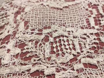 copri cuscino antichissimo della trisavola in filet di cotone lavorato con motivi floreali. Il filet per quanto antico e delicato presenta dei buchi nel ricamo, ma recuperabili se eseguiti da mani esperte. Per le misure vedere foto. Adatto per gli interessati del ricamo antico o a chi ha un progetto per riutilizzarlo nell' odierno, esempio : (un quadro che vanno tanto di moda adesso, oppure un elemento di abbellimento da inserire in un abito da sposa come pettorina o veletta o altro, un copri lampada da tavolo ecc ...) se avete bisogno di informazioni contattatemi . grazie.