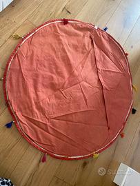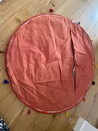 Copri cuscino rotondo grande, fatto a mano. Acquisto in India. Con bellissime decorazioni, eseguite con paillettes ed elaborati ricami. Può essere utilizzato anche senza cuscino interno, come drappo decorativo.