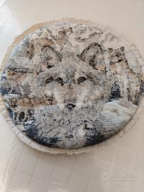 Copri cuscino rotondo ricamato a mano - raffigurati 7 lupi - Misure cm. 35 x 35 - Usato ma in ottimo stato