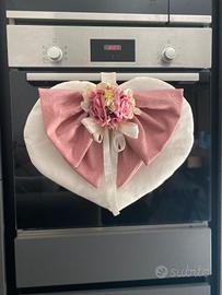 copri forno a cuore con fiocco e rifinito con fiori si può realizzare in qualsiasi colore