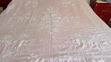 Copri letto matrimoniale antico, in organza bianco , ricamato a mano. Nuovo mai usato. Conservato benissimo.